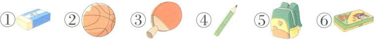 答案:学习用品有( ①④⑤⑥ ),体育用品有( ②③ )。