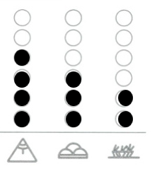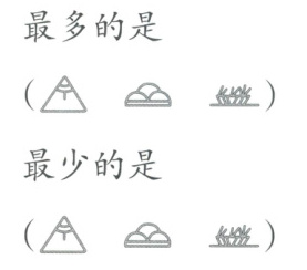 (1)观察插图1,数出各图标数量:⚡有4个,⛺有3个,?有2个。在插图2对应位置涂色(⚡涂4个○,⛺涂3个○,?涂2个○)。最多的是⚡,最少的是?。(2)按颜色数,红色图标有2个,黄色有3个,蓝色有4个。