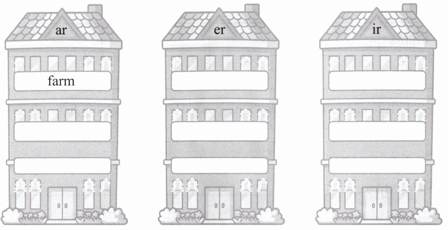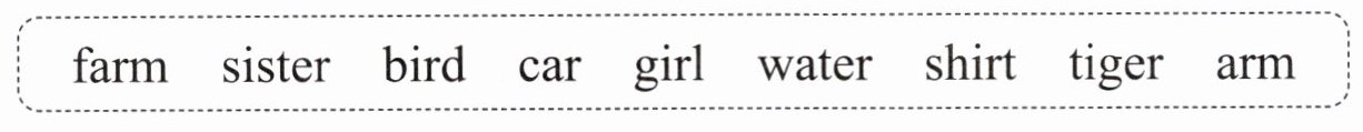 先明确各字母组合发音:ar发/ɑː/,er发/ə/,ir发/ɜː/。farm中ar发/ɑː/;sister中er发/ə/;bird中ir发/ɜː/;car中ar发/ɑː/;girl中ir发/ɜː/;water中er发/ə/;shirt中ir发/ɜː/;tiger中er发/ə/;arm中ar发/ɑː/。再分类填写。