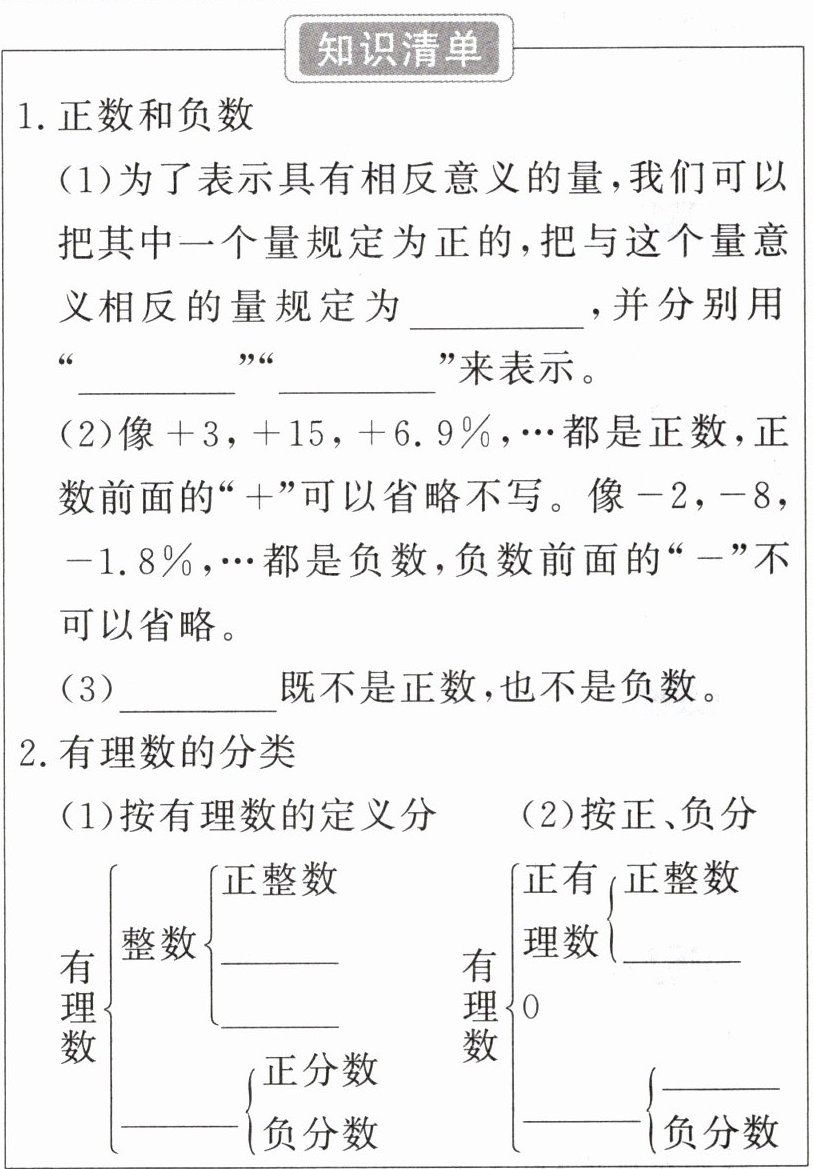 (1)为了表示具有相反意义的量,我们可以把其中一个量规定为正的,把与这个量意义相反的量规定为负的,并分别用“+”和“-”来表示。