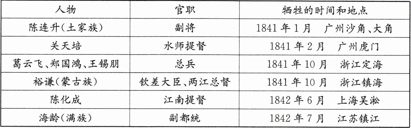 5.(★)以下是中国近代某次战争中壮烈捐躯的清朝著名将领一览表。据此可知,这些将领(