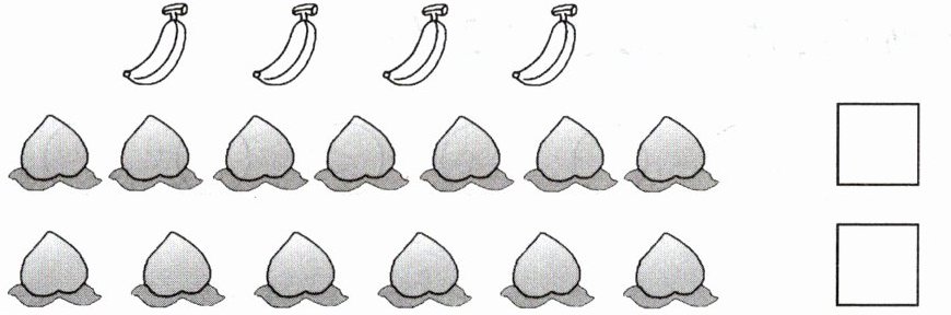 (2)在比香蕉多 2 个的桃子的后面画“√”。