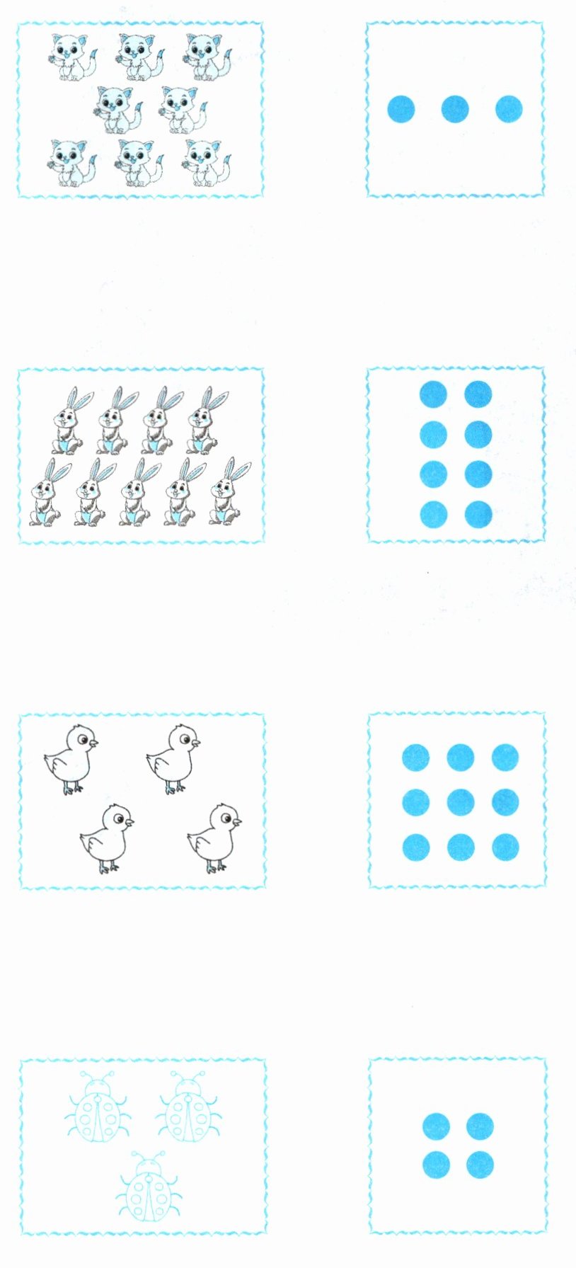 先数出每种小动物的数量,再数出每个方框中圆点的数量,将数量相同的连起来。
