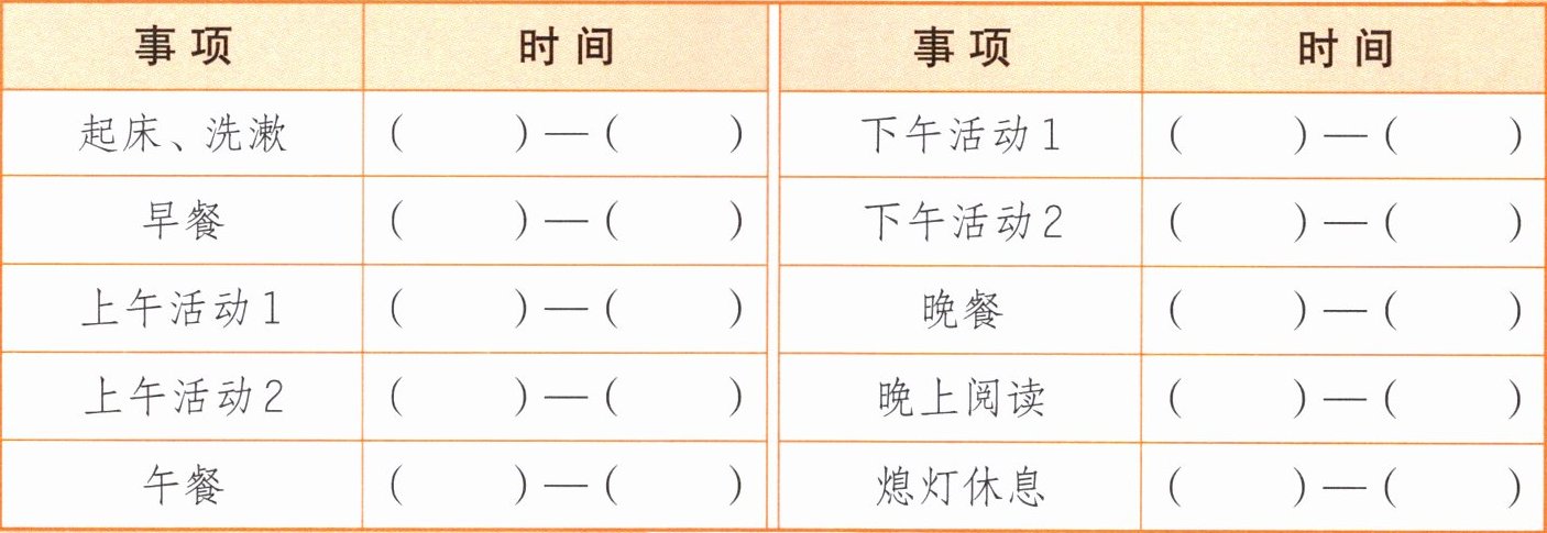 答案:起床、洗漱:7:00—7:30