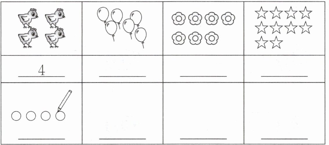 1. 第一格有4只小鸡,已填好数字4。