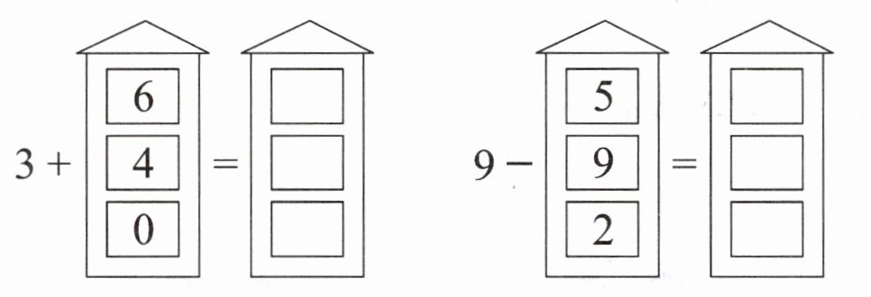 左图:3+6=9,3+4=7,3+0=3;右图:9-5=4,9-9=0,9-2=7