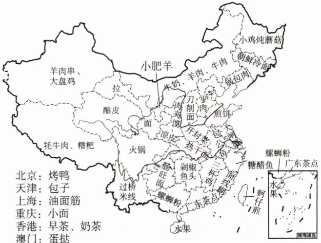 色文化的重要载体之一。 下图为 中 国部分省份美食分布图 。 读图,完成 4、5 题。