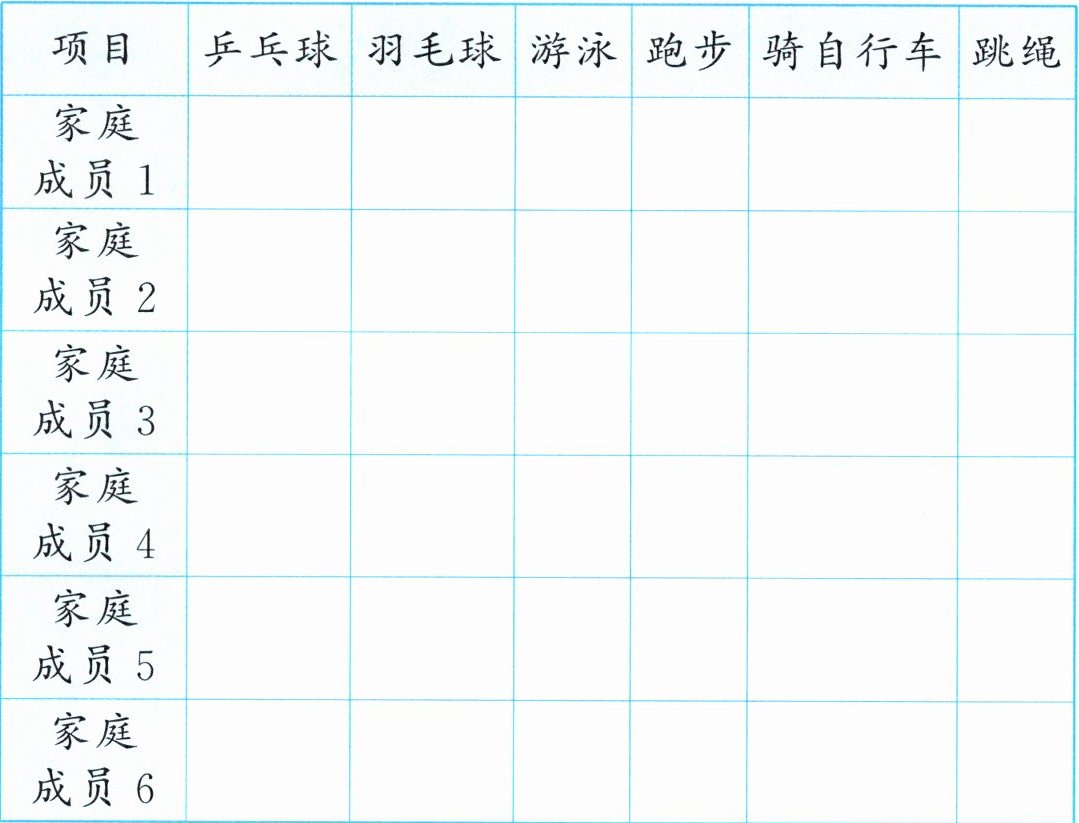 家庭成员喜欢的运动项目统计表