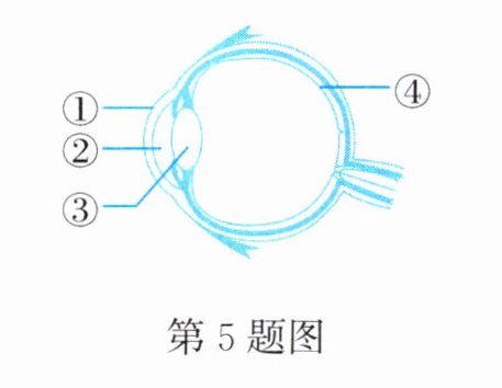 5. 2025 年“全国爱眼日”的宣传主题是“关注普遍的眼健康”,其中眼球的结构如图所示。下列叙述错误的是(