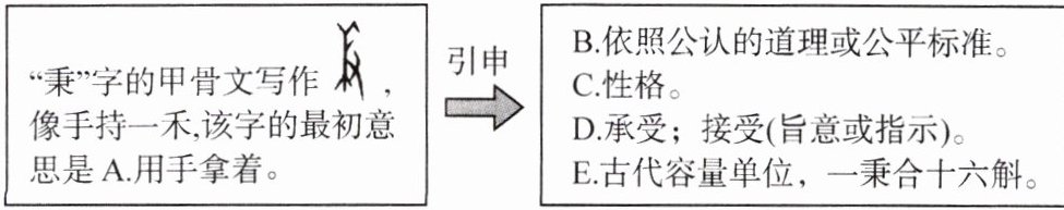 7. 下面是“秉”的字义演变过程,根据句意选出四句话中“秉”字的不同含义。
