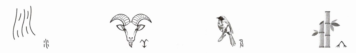 (水 川) (羊 牛) (鸟 兔) (木 竹)