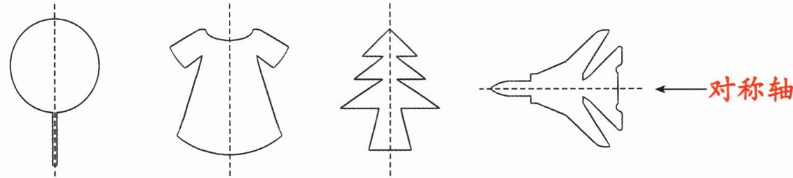 答案:这些物体都是轴对称图形,都有对称轴,沿对称轴对折后,对称轴两侧的部分能够完全重合。