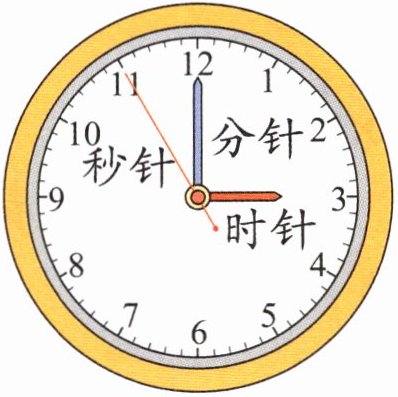 答案:钟面上一共有(12)个数,一共有(12)个大格,一个大格中有(5)个小格,一共有(60)个小格。
