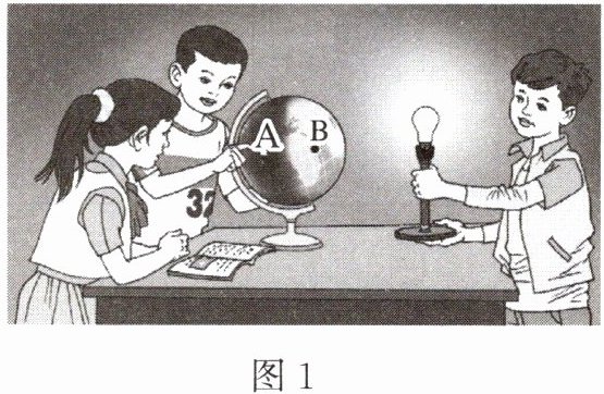 在学习了地球运动的相关知识后,同学们用灯泡和地球仪演示地球运动(如图 1)。据此完成 1~3 题。