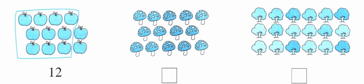 观察树的图片,可按照从上到下的顺序依次数出树的数量,第一行有$6$棵树,第二行有$6$棵树,第三行有$6$棵树,将每行的数量相加,可得树的总数为$6 + 6 + 6 = 18$棵。