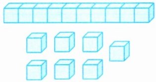1个十是10,6个一是6,10+6=16;10块橡皮是1个十,旁边有3块橡皮是3个一,10+3=13;上面有10个小正方体是1个十,下面有7个小正方体是7个一,10+7=17。
