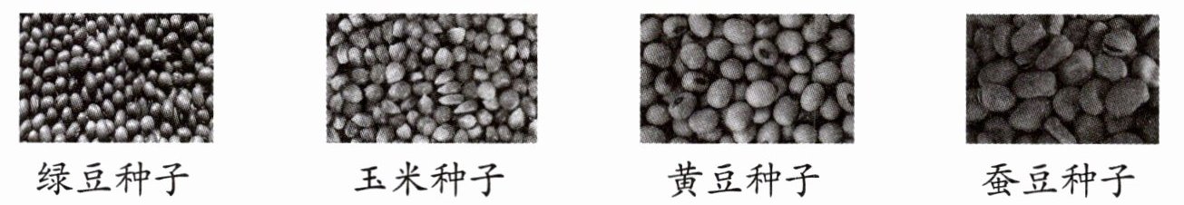 2. 蚕豆种子内部有胚根、胚芽、子叶、种皮等结构,请在下图(