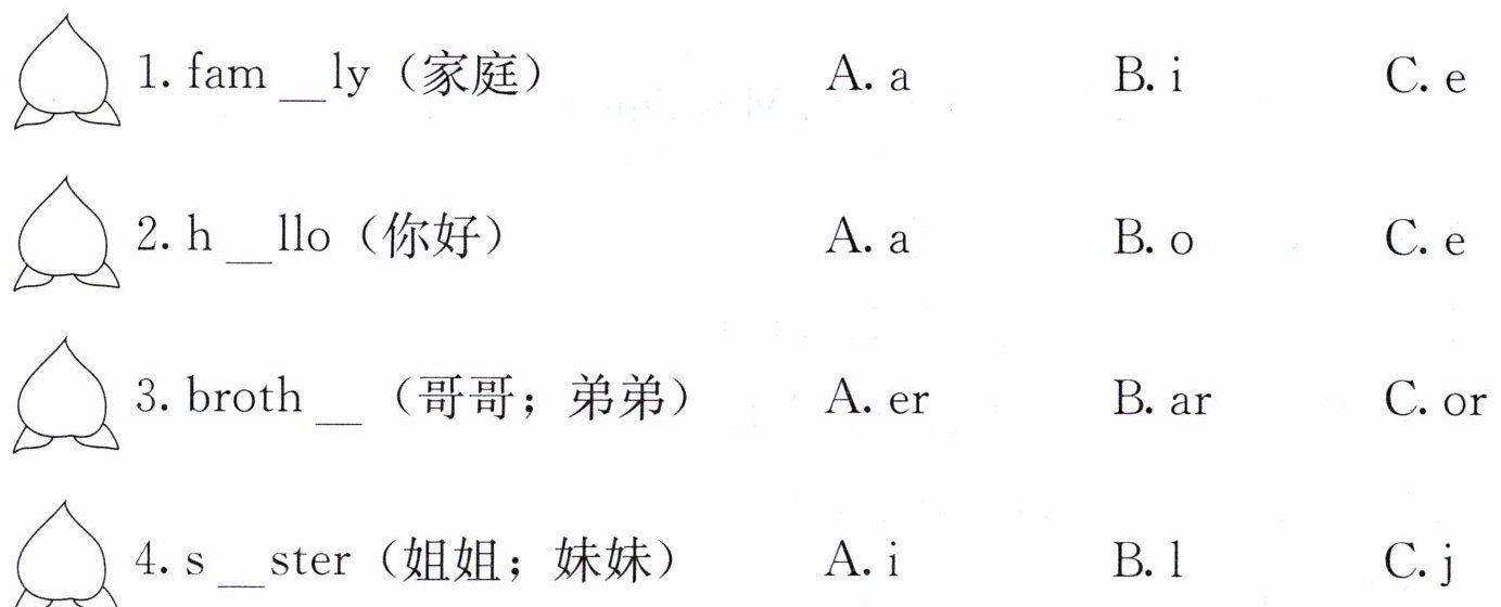 Ⅲ. 选择正确的字母,把单词补充完整。