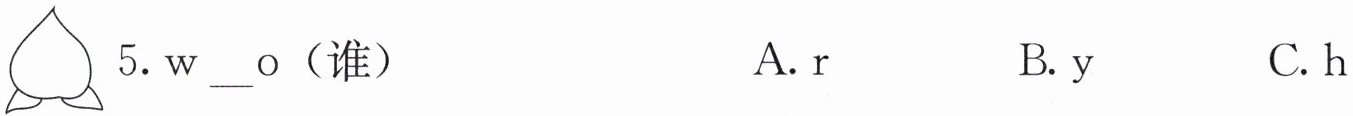 5. "who" 这个单词中缺失的字母是 "h"。