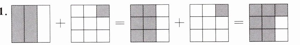 $ \frac{2}{3}+\frac{1}{9}=\frac{(\ \ \ \ \ \ )}{(\ \ \ \ \ \ )}+\frac{(\ \ \ \ \ \ )}{(\ \ \ \ \ \ )}=\frac{(\ \ \ \ \ \ )}{(\ \ \ \ \ \ )} $