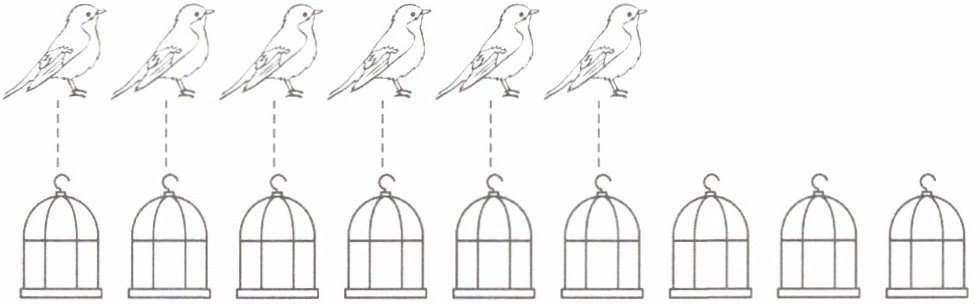 先数出鸟的数量为6只,鸟笼的数量为9个。因为6小于9,所以鸟比鸟笼少。