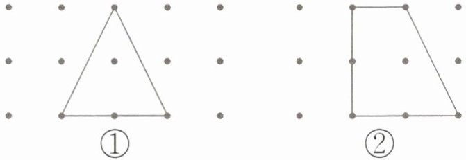 通过数钉子板上图形所占的小方格数量比较大小。图①是三角形,占约3个小方格;图②是梯形,占约4个小方格。3<4,所以第①块“草地”小一些。