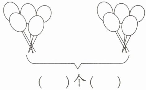 1. 图中有两组气球,每组有5个气球,总共有2组。因此,加法算式为5 + 5 = 10,乘法算式为5 × 2 = 10或2 × 5 = 10。括号中填写2个5。