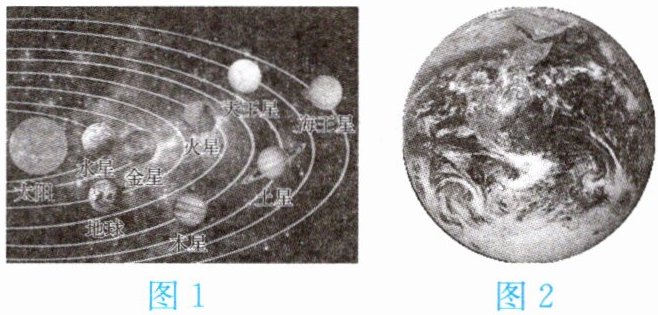 在浩瀚无垠的宇宙中,有许多美丽而神秘的星球。我们所在的星球——地球,虽只是茫茫宇宙中一粒细微的尘埃,却是人类迄今唯一赖以生存的家园。地球带来的惊艳和魅力始终吸引人们不断探索。读地球在宇宙中的位置示意图(图1)和地球卫星影像(图2),完成1~3题。