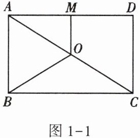 1. 如图 1 - 1,O 是矩形 ABCD 的对角线 AC 的中点,OM//AB 交 AD 于点 M,若 OM = 3,BC = 10,则 OB 的长为(