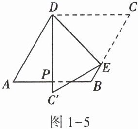1. 如图 1 - 5,在菱形纸片 ABCD 中,∠A = 60°,折叠菱形纸片,使点 C 落在 DP(P 为 AB 中点)所在直线上的 C'点,得到经过点 D 的折痕 DE,则∠DEC 的大小为(