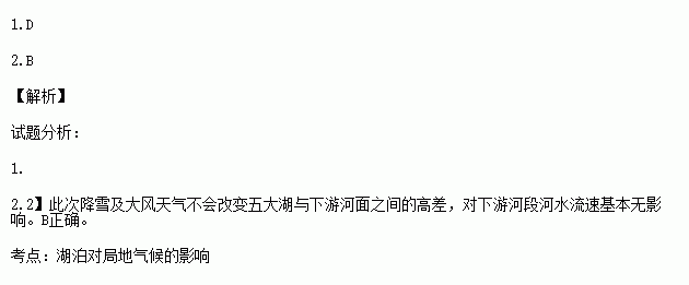 2.此次大湖效应给周边地区带来了很大的影响,下面叙述不正确的是