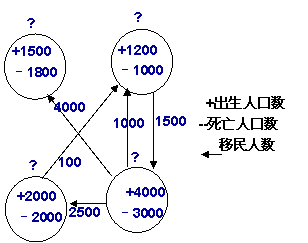 读四城市某年人口变动资料图(变动前,四城市人口相等)。回答问题。![]()