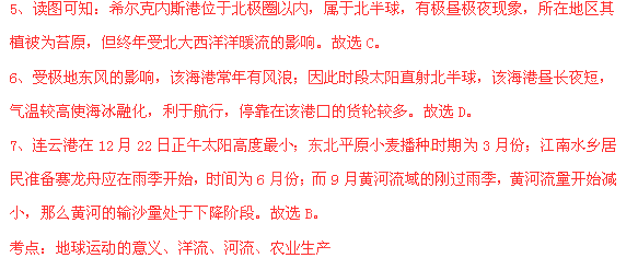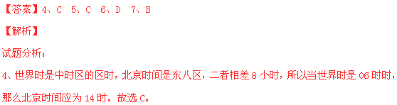 4. 若货轮在世界时06时到达,北京时间为 ( )