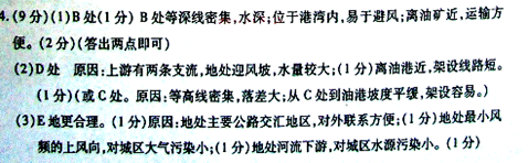 (3) 规划在E或F地建一个石化工业区,哪一个更为合理?试分析原因。(4分)