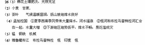 (2)B地是平原,这里的主要粮食作物是____,主要经济作物是____。(2分)