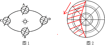 分析 读图1可得,A是春分日即3月21日,B是秋分日即9月23日,C是夏至日即6月22日,D是冬至日即12月22日.