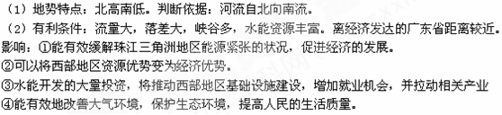(2)简要分析珠江流域水能开发的有利条件,以及水能开发对流域内经济发展的影响。