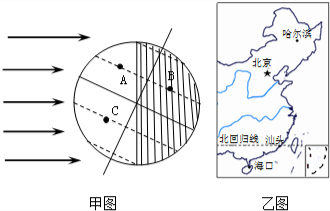 £¨3£©Í¼¼×ÖÐA¡¢B¡¢CÈýµØÖçÒ¹³¤¶ÌÏàͬµÄÁ½µØÊÇAB£¬ÒòΪËüÃÇÔÚͬһÌõγÏßÉÏ£®