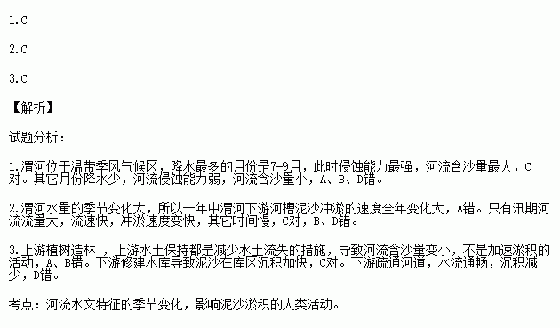 泾河和渭河在古城西安北郊交汇时,由于含沙量或矿物含量的不同,便呈现不同水色河水交汇时互不相融的奇特景观,形成了一道非常明显的界限,科学家调研发现,当渭河含泥沙量达到每立方米10公斤时,水色会呈赤黄色。学者经过考证,证实古今泾渭分明的水色表现完全相反,读图,结合所学知识回答下列各题。