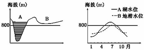 下图图中A为我国塔里木盆地某内陆湖,B为湖边的一处绿洲。读图回答1~2题。