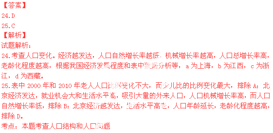读我国部分省(市、区)第五次(2000年)、第六次(2010年)人口普查相关数据,回答24~25题。