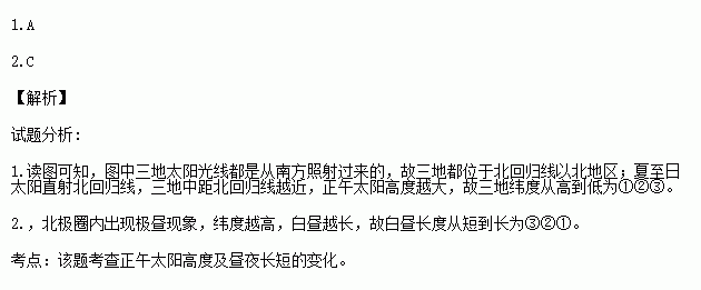 2.此日昼长时间从短到长的排序是