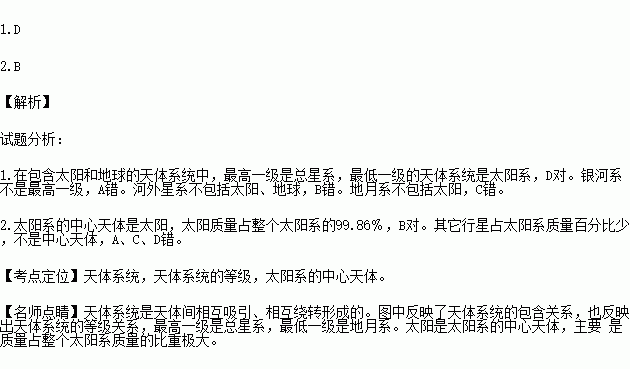 1.在包含太阳和地球的天体系统中,最高一级和最低一级的天体系统分别( )