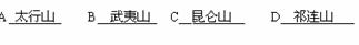 | A.①-巫山 | B.②-雪峰山 | C.③-昆仑山 | D.④-祁连山 |
