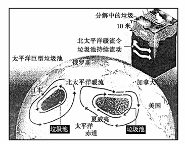 在夏威夷海岸与北美洲海岸之间出现了一个“太平洋垃圾大板块”,可称之为世界“第八大洲”。这个“垃圾洲”由数百万吨被海水冲积于此的塑料垃圾组成。据国外媒体报道,美国海岸目前正经受着一场史无前例的危险局面。结合右图,回答第8题。