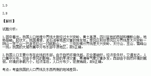 2.该线两侧人口密度差异的原因有①西侧生态环境脆弱②西侧人口迁出数量多③东侧自然条件优越,自然灾害较少④东侧经济较发达,促使人口集聚