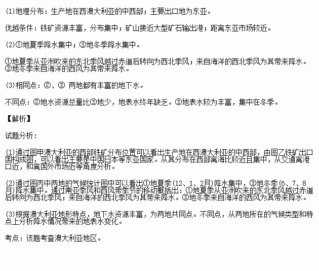(1)描述澳大利亚铁矿石生产和出口地的地理分布,评价其铁矿石出口的优越条件。(5分)