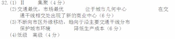 (2) 在城市发展中,商业区位的分布的主要原则是________________阶段Ⅱ商业用地分布的特点是________________。阶段Ⅲ商业用地出现的新变化是_____________________________。(6分)