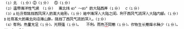 (4)读材料三,简要评价A地区气候条件对农业生产的影响。(4分)
