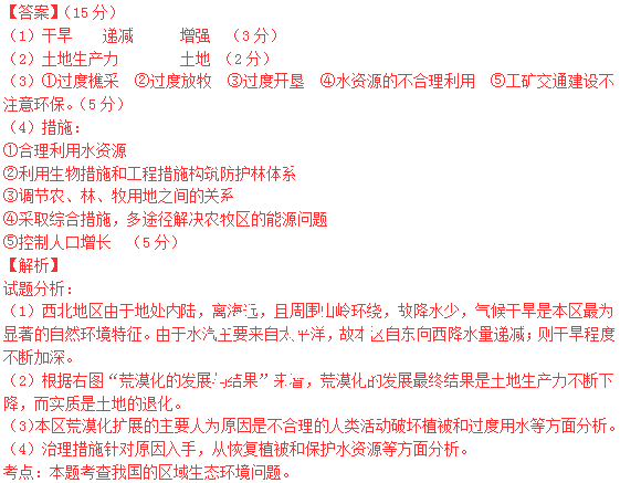(3)简述西北荒漠化的人为因素。(5分)